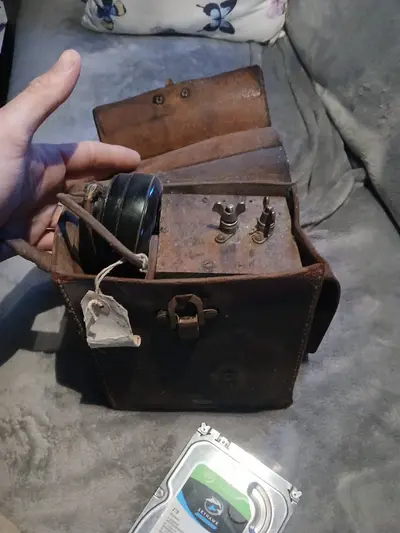 Vintage magneto field telephone from the Atlantic Coast Line Railroad Company, dated January 11, 1965. Features original leather carrying case with buckle closure, hand-crank magneto generator, and binding post terminals. Includes original ACL inspection tag with telephone number, inspector signature, and date — excellent documented provenance. A rare piece of American railroad history from one of the Southeast's most iconic rail lines, just two years before the ACL merged with Seaboard Air Line Railroad in 1967.
