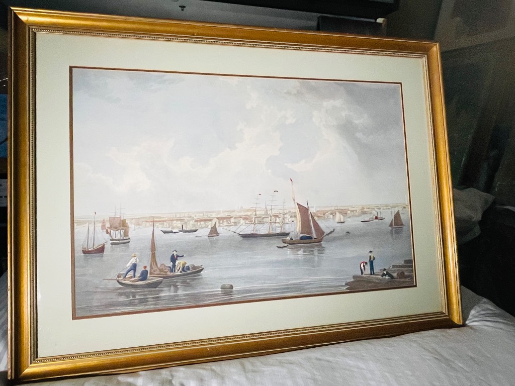 Antique 19th Century Hand-Colored Steel Engraving of “Boston Harbor” by Charles Mottram, COA/Provenace