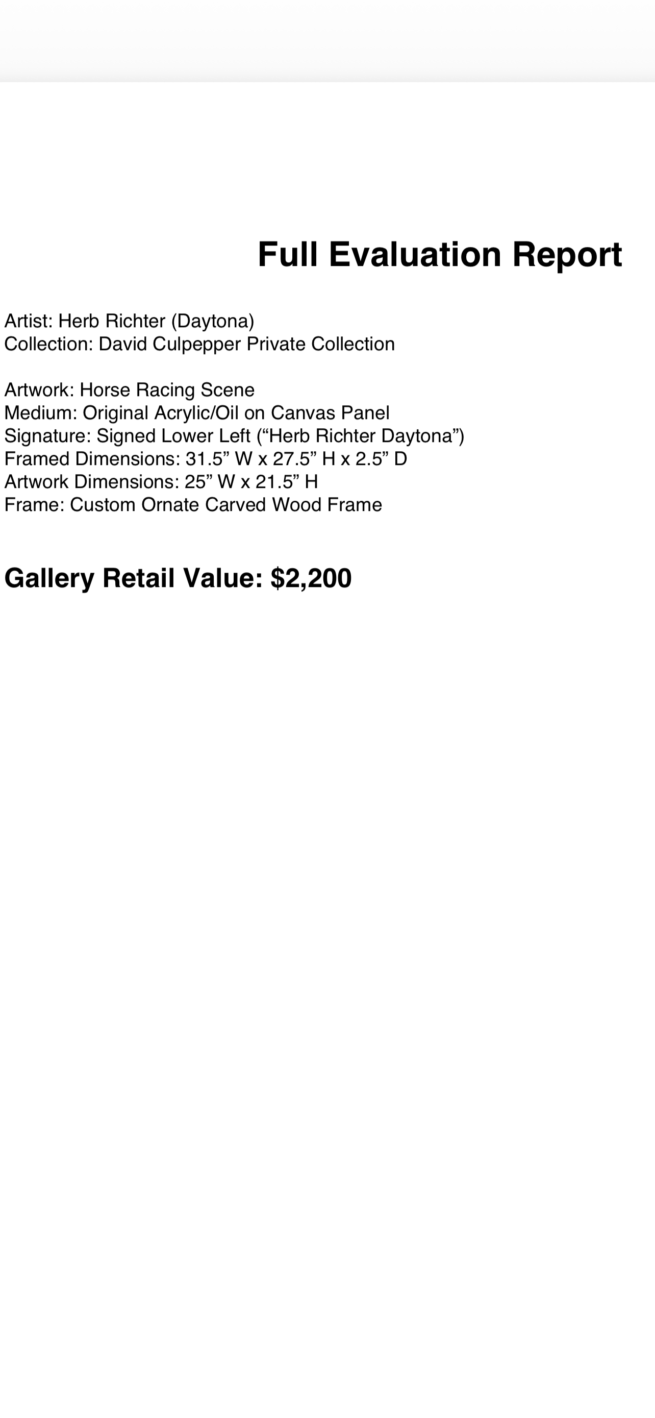 Vintage Herb Richter “Daytona” Signed oil on Canvas in a custom carved wood frame