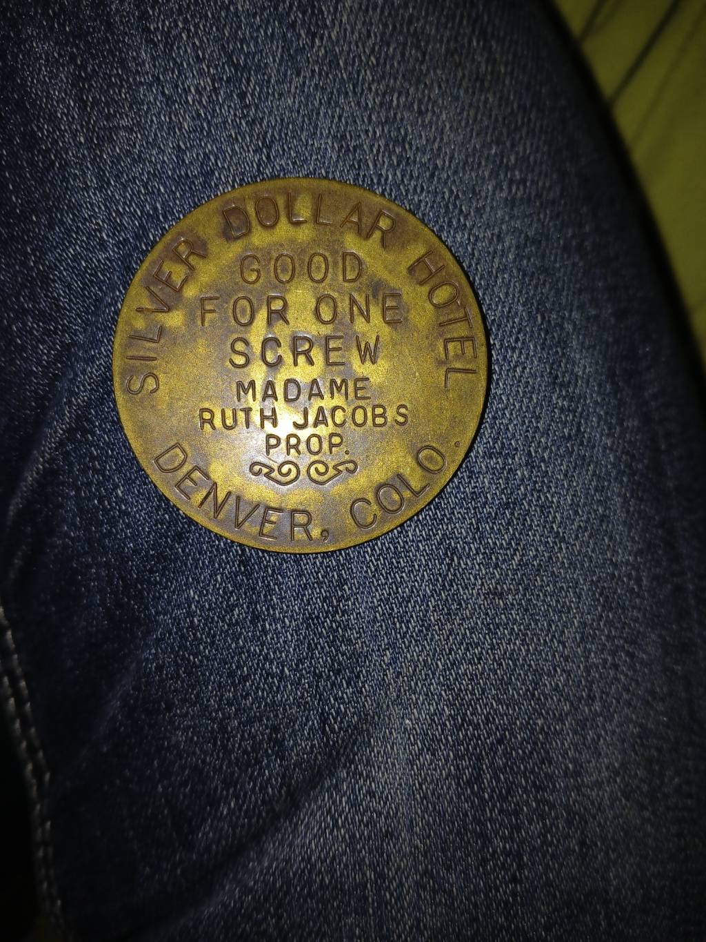 RARE Antique Denver Bordello Token “Good For One Screw” Silver Dollar Hotel $3