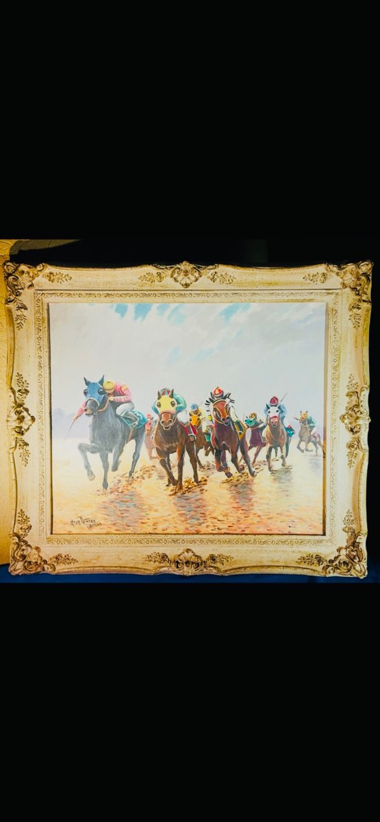Signed "Daytona" Mixed Media on Board by Herb Richter – Custom 2-Tier Carved Frame