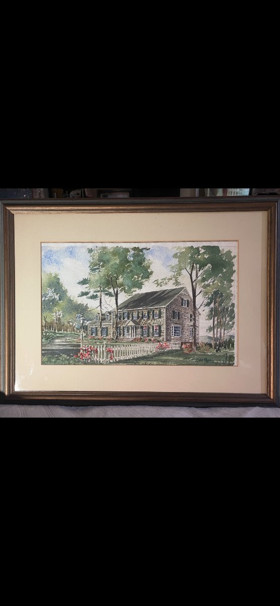 Signed Watercolor "John Alden House" by John Morris c.1871 – Woodstock, GA