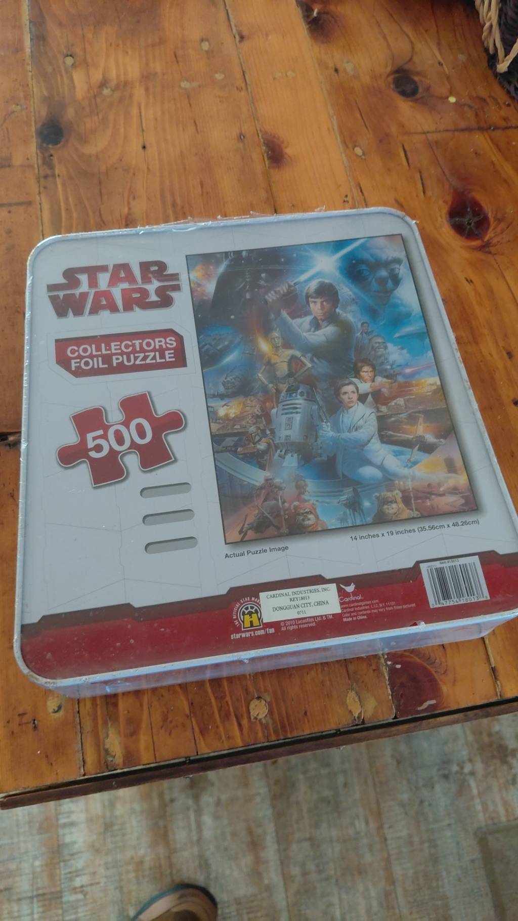 Star Wars collectors foil puzzle — unopened and factory sealed. This special edition 500-piece Cardinal brand puzzle features iconic Star Wars imagery with premium foil finish. Unopened Star Wars memorabilia consistently appreciates in value, making this a smart collectible investment. Tags: Star Wars puzzle, collectors edition, foil puzzle, unopened collectible, Star Wars memorabilia, factory sealed, Cardinal puzzle, Star Wars collector, sci-fi collectible, vintage puzzle